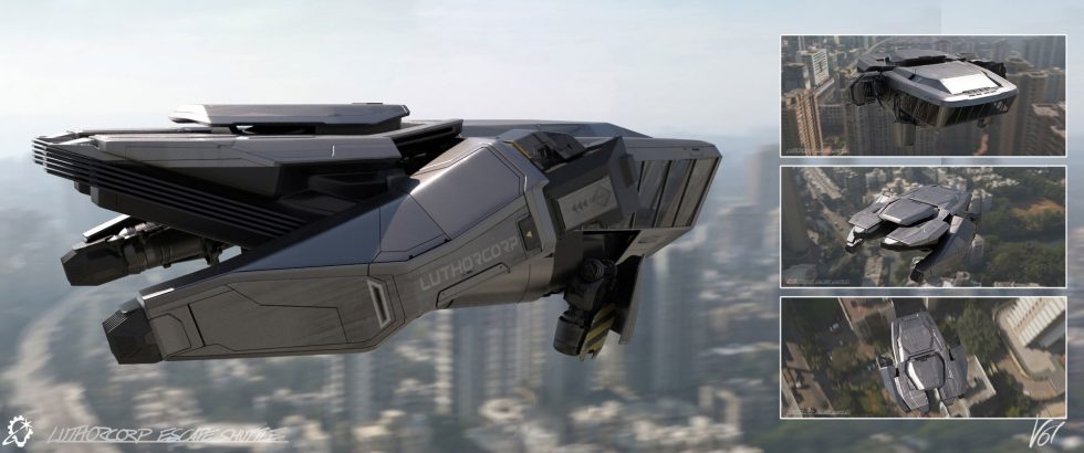 El director de arte Chris Voy diseñó la lanzadera de escape de Luthcorp, una ingeniosa proeza arquitectónica que inicialmente parece una plataforma de observación que conecta las torres del edificio antes de transformarse dramáticamente en una aeronave durante una fuga de alto riesgo. El trabajo de Voy se centró en lograr que la estructura de doble propósito fuera convincente tanto como arquitectura estacionaria como como vehículo funcional, creando incluso animaciones preliminares para demostrar cómo la lanzadera se desprendería y desplegaría sus motores de forma explosiva.