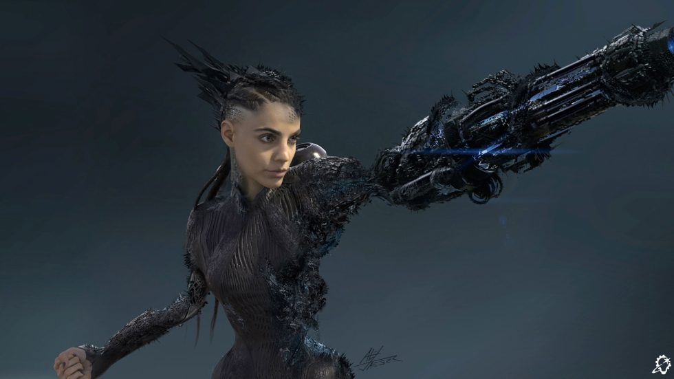 El director artístico sénior Alex Jaeger abordó el complejo diseño de la "tecnología de nanitos" de la Ingeniera, que permite transferir material de una parte del cuerpo del personaje para formar armas. Inspirándose en minerales naturales, Jaeger equilibró la eliminación de material suficiente para crear armas creíbles, manteniendo al mismo tiempo la fuerza y la capacidad visual del personaje.