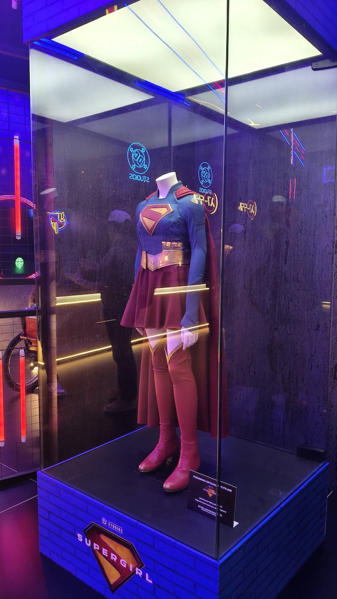 El logo oficial de la película Supergirl también adorna la impresionante exhibición.