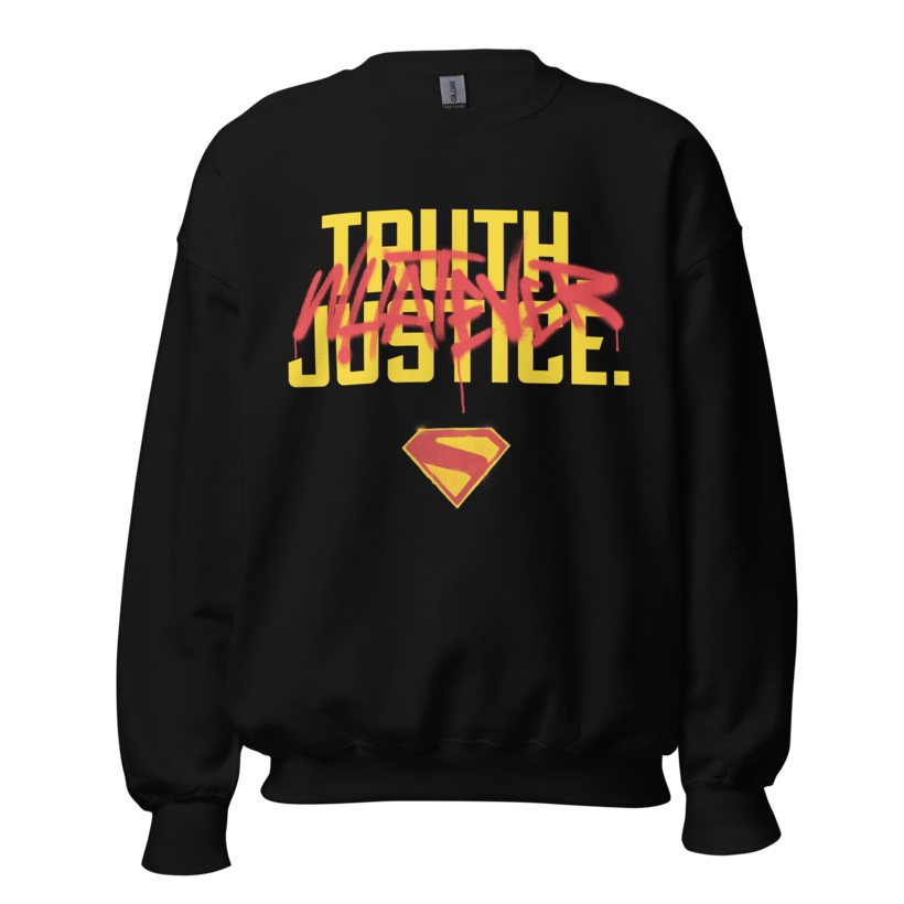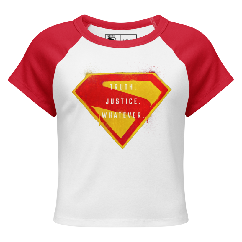 Las exclusivas de DC Shop incluyen el icónico Escudo S y el eslogan de la película "Verdad. Justicia. Lo que sea" en camisetas raglán para bebé (disponibles en rojo y azul, $31.95) y camisetas de cuello redondo para mujer y unisex (disponibles en negro y azul, $36.95). También está disponible un póster premium con el nuevo arte del tráiler, con Alcock como Supergirl/Kara (20x30 por $14.95, 24x36 por $39.95).
