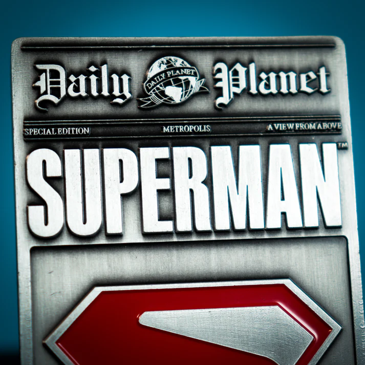 El lingote está elaborado con un baño de níquel antiguo y presenta un retrato detallado de Superman en el anverso. El reverso muestra la portada del periódico Daily Planet, con el escudo de Superman resaltado en esmalte rojo. Con unas medidas de 89 x 59 milímetros, es una pieza sustancial diseñada para su exhibición. Cada lingote está numerado individualmente y limitado a 5000 unidades en todo el mundo, lo que garantiza su exclusividad. Al ser un producto con licencia oficial de DC Comics, cumple con los más altos estándares de calidad y autenticidad.