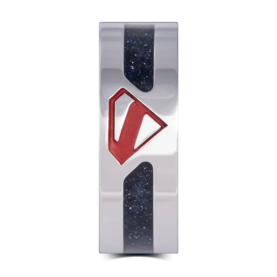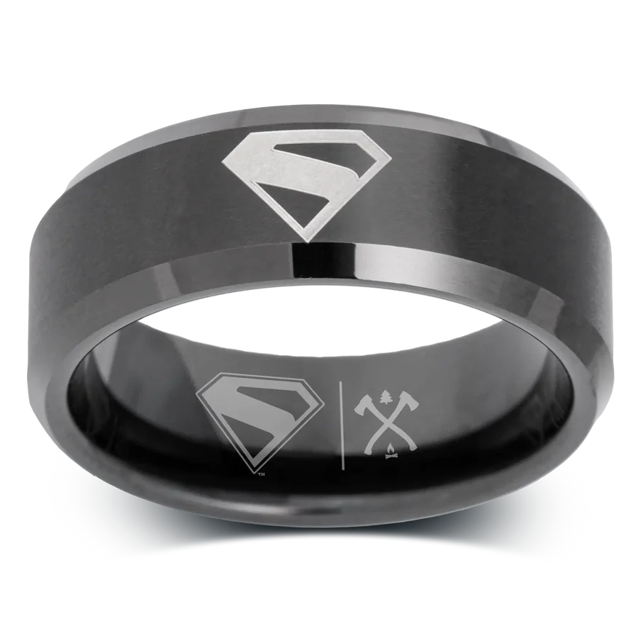 El Kal-El: En honor al origen kriptoniano de Superman, esta correa de 8 mm con diseño biselado está elaborada en tungsteno chapado en negro y presenta el símbolo kriptoniano de la "esperanza" grabado tanto en el exterior como en el interior. La funda. Disponible en tallas 5-17.