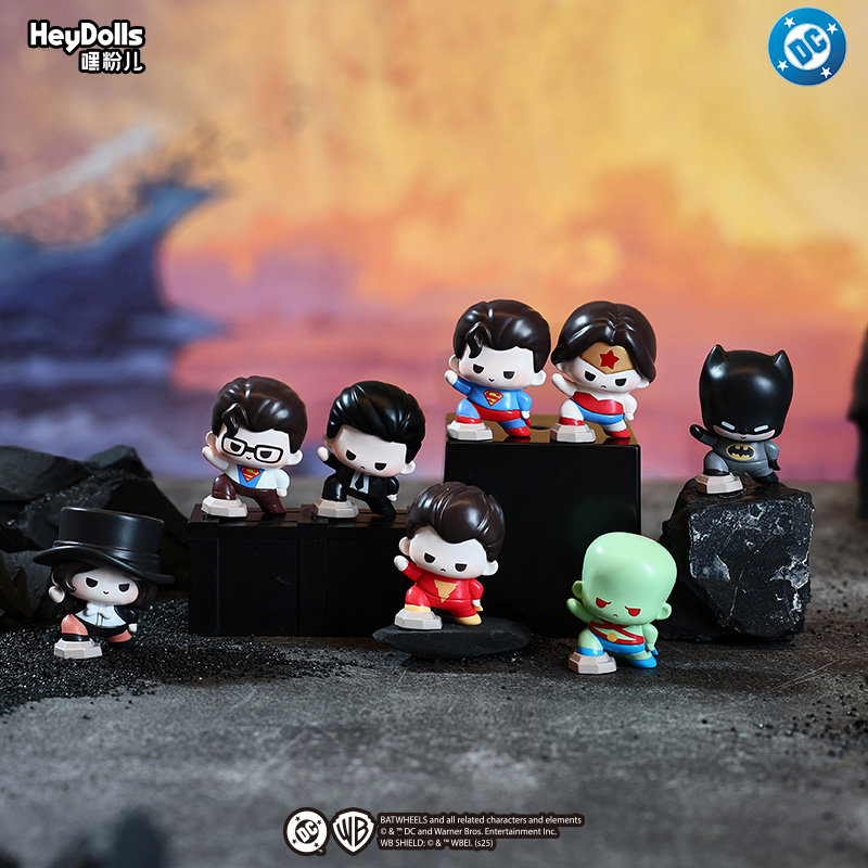 Cada figura de la colección mide aproximadamente entre 3,2 y 3,6 centímetros de altura y se presenta en una bolsa sorpresa, combinando la emoción del descubrimiento con el atractivo del coleccionismo. La serie incluye 18 personajes únicos, entre ellos Batman, Superman, Wonder Woman, Clark Kent, Bruce Wayne, Zatanna, Linterna Verde, Flash, Aquaman, Cyborg, Shazam, Detective Marciano, Lex Luthor, Darkseid, Black Adam, Batman Que Ríe, Reverse Flash y Deathstroke, ofreciendo a los fans la oportunidad de completar la colección completa.
