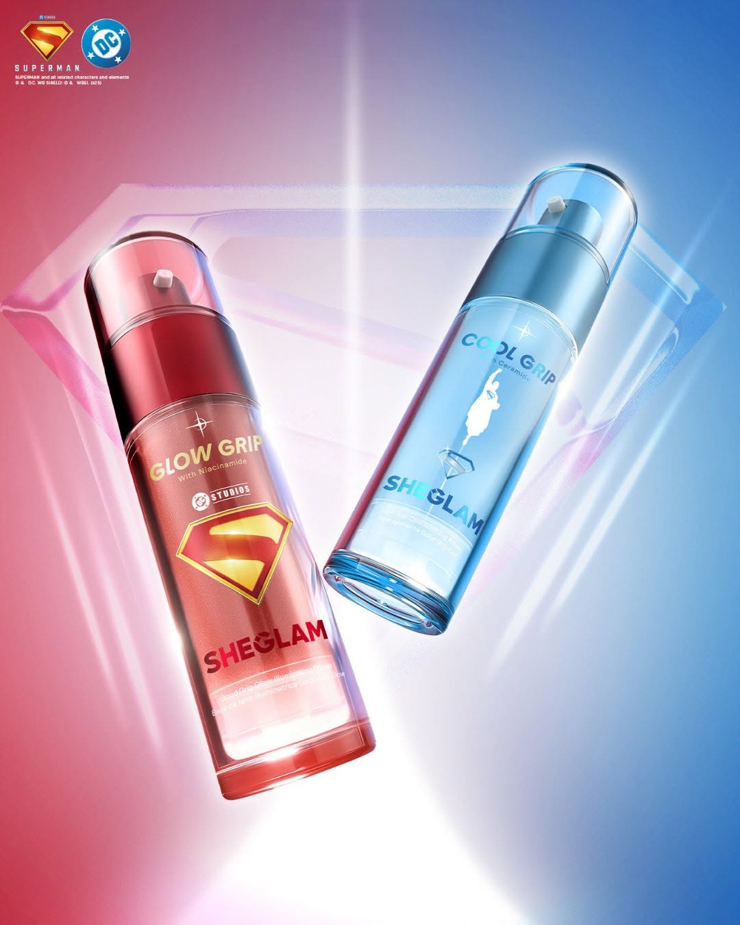 • Prebase Iluminadora Good Grip Glow: Una fórmula radiante que cuida la piel, enriquecida con oro, niacinamida, proteínas y ácido hialurónico para iluminar la tez y retener la hidratación. Su luminoso envase dorado refleja el emblema de esperanza de Superman y el brillo de la belleza empoderada.