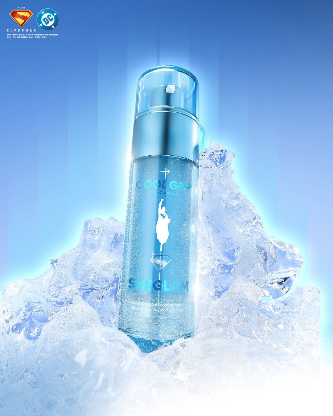 • Prebase calmante refrescante Good Grip: Formulada con agua de glaciar ártico, glicoproteína, ceramida y ácido hialurónico para hidratar, refrescar y preparar la piel al instante. Su textura ligera crea una fijación similar al velcro que mantiene el maquillaje intacto durante todo el día, mientras que el envase azul Superman evoca poder y resistencia.