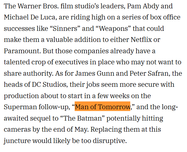En un artículo publicado por Variety el pasado 19 de febrero titulado "Dentro de Warner Bros. Discovery, la opinión de muchos empleados se inclina por la venta de Netflix frente a la adquisición de Paramount" (Inside Warner Bros. Discovery, Mood Among Many Staffers Shifts in Favor of Netflix Sale vs. Paramount Takeover) escrito por Todd Spangler, Michael Schneider y Brent Lang, en donde se habla especialmente de la posible venta de WB a Netflix, una pequeña frase llamó la atención de sitios especializados (especialmente), cuentas, canales independientes y fans.
