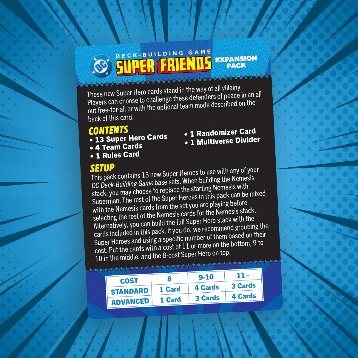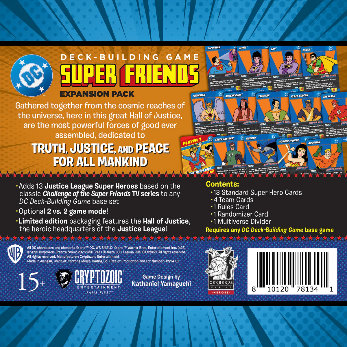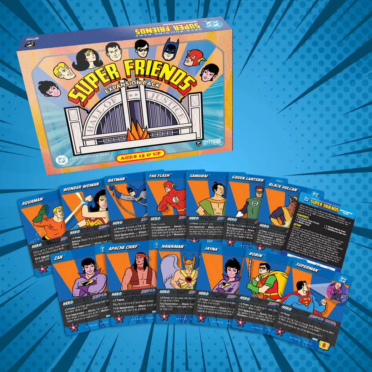 Con sus atractivas mecánicas y su nostálgico plantel de personajes, el Pack de Expansión DC Deck-Building Game: Super Friends refuerza el compromiso de Cryptozoic de ofrecer productos inmersivos y de alta calidad que conecten tanto con jugadores ocasionales como con los más veteranos.