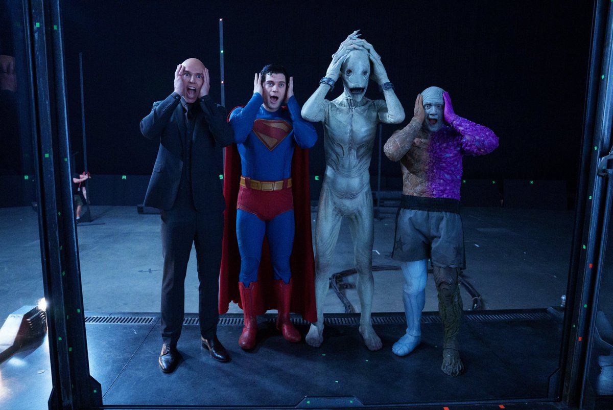 El director James Gunn compartió una nueva foto del detrás de cámaras de su película Superman, donde aparecen Nicholas Hoult (Lex Luthor), David Corenswet (Superman), Trevor Newlin (Mr. Handsome) y Anthony Carrigan (Metamorpho).