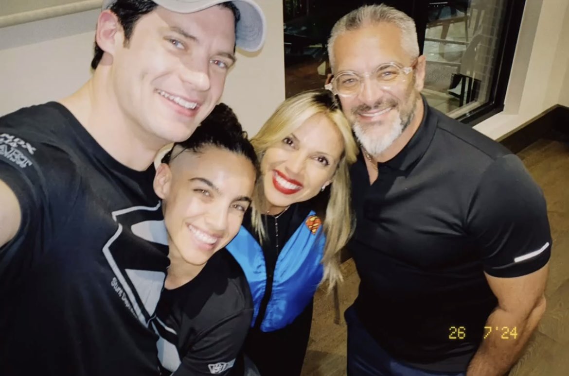 Finalmente, han surgido en línea unas fotografías de David Corenswet junto a la actriz Maria Gabriela de Fariah y sus padres, en donde destaca ver a David vestiendo una hermosa camiseta con una versión negro-gris del escudo de Superman para esta nueva película.