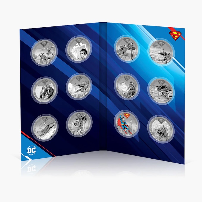 Colección oficial de monedas de Superman bañadas en plata .999 de DC Comics