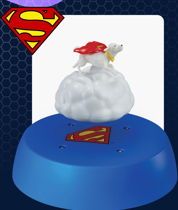 Celebra el poder de la amistad y la lealtad con esta figura coleccionable de Krypto levitando. Flotando con gracia sobre su base, la figura de 6,35 cm del fiel superperro de Superman cobra vida con vibrantes luces LED y efectos de sonido que responden al tacto. Perfecto para amantes de los perros, fans de DC o cualquiera que busque añadir una pieza central divertida y heroica a su colección.