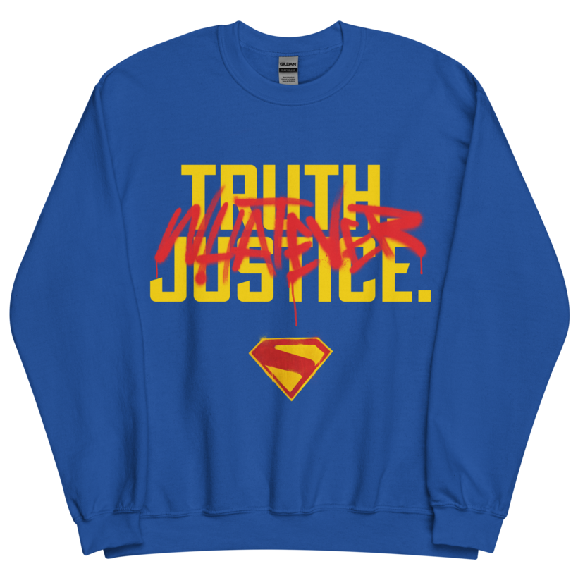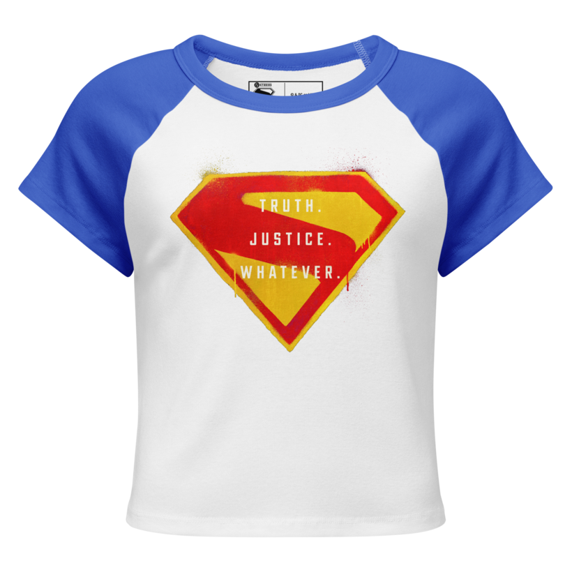Las exclusivas de DC Shop incluyen el icónico Escudo S y el eslogan de la película "Verdad. Justicia. Lo que sea" en camisetas raglán para bebé (disponibles en rojo y azul, $31.95) y camisetas de cuello redondo para mujer y unisex (disponibles en negro y azul, $36.95). También está disponible un póster premium con el nuevo arte del tráiler, con Alcock como Supergirl/Kara (20x30 por $14.95, 24x36 por $39.95).