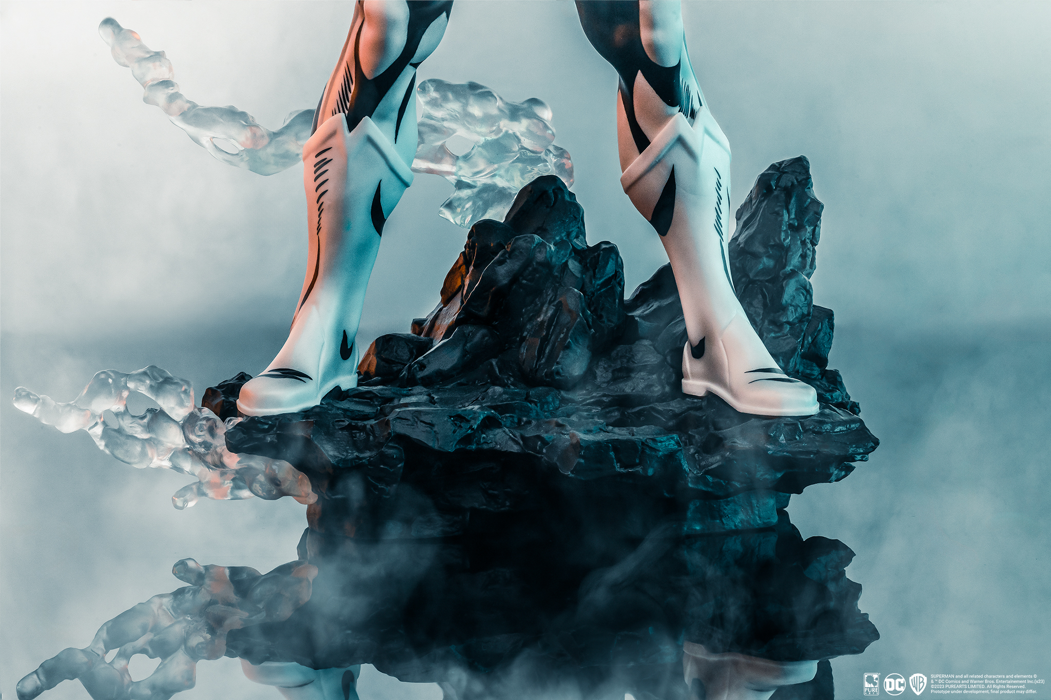 Con una impresionante altura de 12" en escala 1/8, esta interpretación en blanco y negro de Superman recrea su pose en un panel icónico de la revolucionaria miniserie de 1986 de John Byrne, "Man of Steel", con un estilo clásico de tinta cómica.