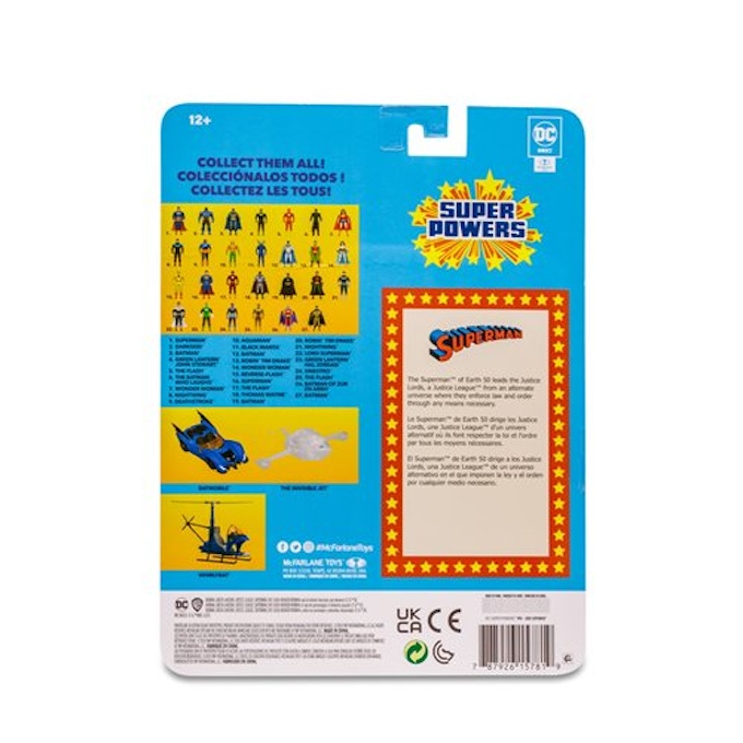Continuando con el legado de la línea DC Super Powers de la década de 1980, llega tu héroe caído favorito en la clásica serie de nostalgia que amas. La figura de acción a escala de 4 1/2 pulgadas de DC Super Powers Wave 6 Lord Superman presenta aproximadamente 5 puntos de articulación y una capa de tela suave. Viene empaquetado en un icónico blíster de Superpoderes con ilustraciones y logotipos actualizados que reflejan a tu personaje favorito.