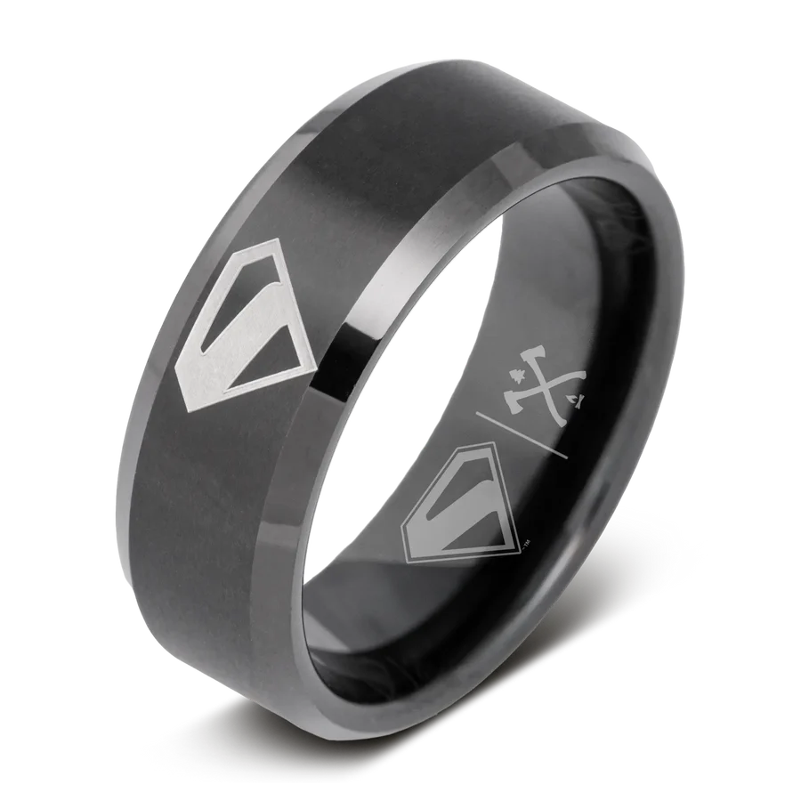 El Kal-El: En honor al origen kriptoniano de Superman, esta correa de 8 mm con diseño biselado está elaborada en tungsteno chapado en negro y presenta el símbolo kriptoniano de la "esperanza" grabado tanto en el exterior como en el interior. La funda. Disponible en tallas 5-17.
