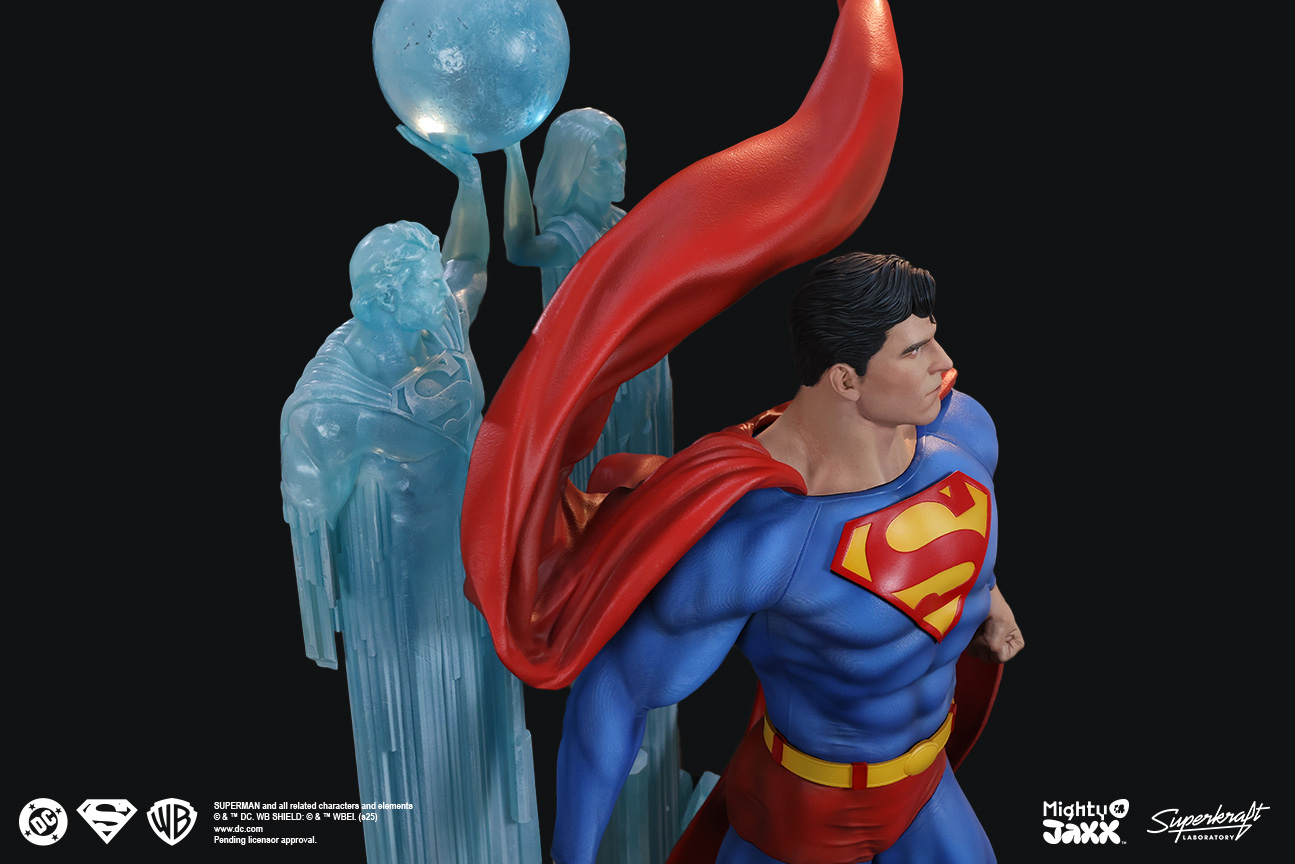 Superman: El Nacimiento de la Esperanza captura la esencia del viaje del Hombre del Mañana: desde su huida de Krypton hasta su surgimiento como protector de la Tierra. En el centro se encuentra la cápsula de escape kryptoniana de Superman, que simboliza su llegada a la Tierra. Detrás de ella, el propio Superman se yergue imponente, con su capa ondeando en forma de "S". La base está inspirada en la Fortaleza de la Soledad y esculpida en resina translúcida para evocar el santuario de Superman. El resultado es una pieza impresionante que une el pasado, el presente y el eterno símbolo de resiliencia de Superman.