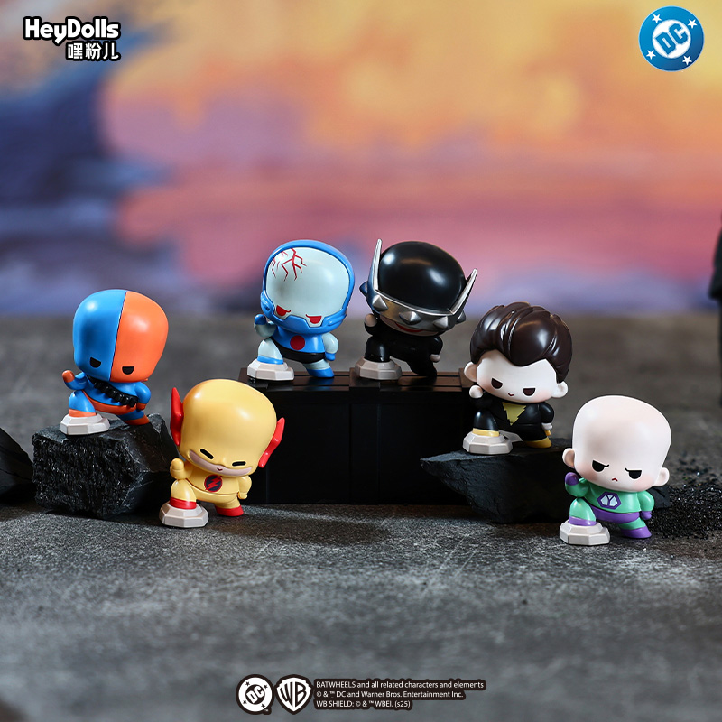Cada figura de la colección mide aproximadamente entre 3,2 y 3,6 centímetros de altura y se presenta en una bolsa sorpresa, combinando la emoción del descubrimiento con el atractivo del coleccionismo. La serie incluye 18 personajes únicos, entre ellos Batman, Superman, Wonder Woman, Clark Kent, Bruce Wayne, Zatanna, Linterna Verde, Flash, Aquaman, Cyborg, Shazam, Detective Marciano, Lex Luthor, Darkseid, Black Adam, Batman Que Ríe, Reverse Flash y Deathstroke, ofreciendo a los fans la oportunidad de completar la colección completa.
