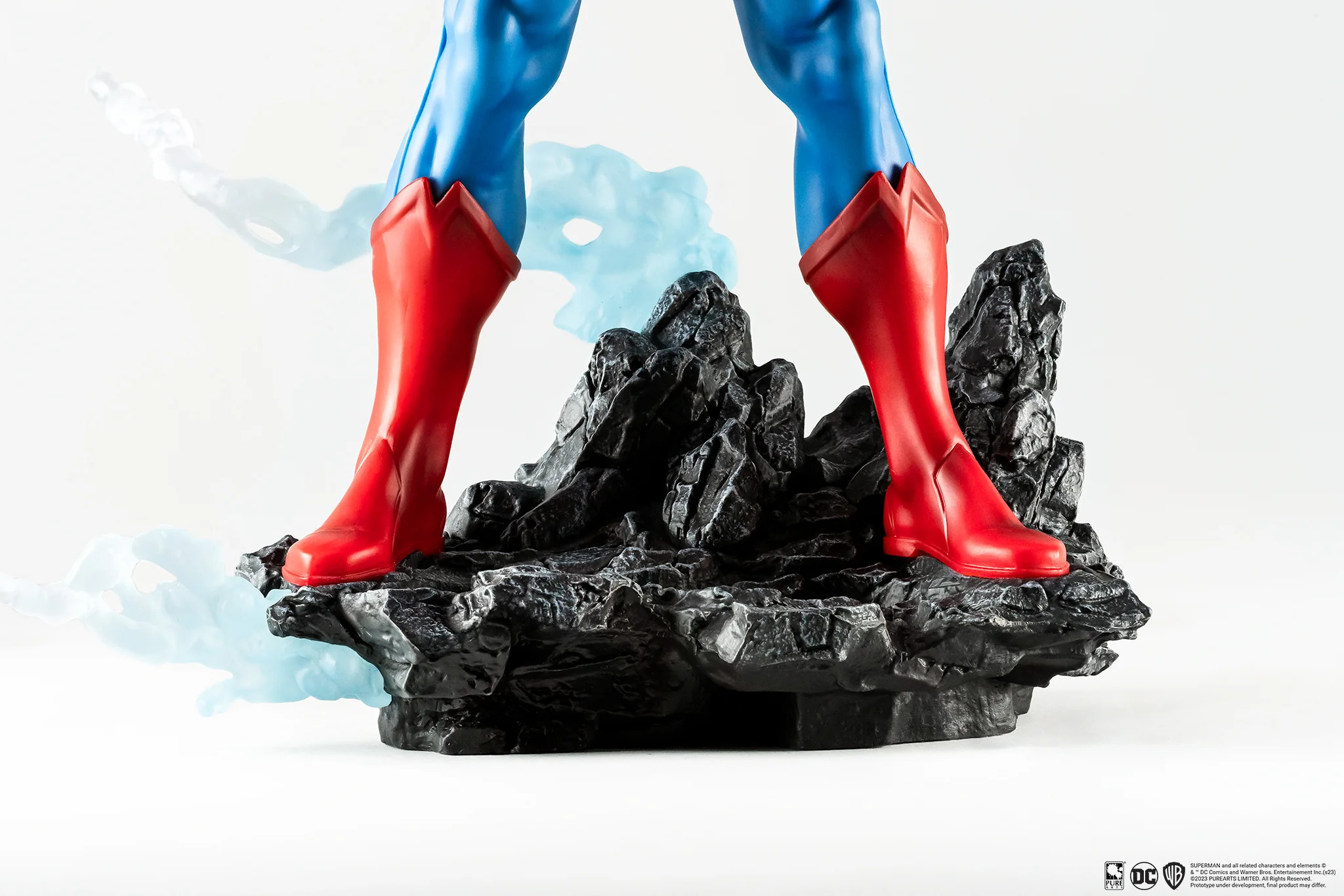 Con una impresionante altura de 12" en escala 1/8, Superman agarra su capa fluida contra un fuerte viento, recreando su pose a partir de un panel icónico de la revolucionaria miniserie Man of Steel de 1986 de John Byrne.