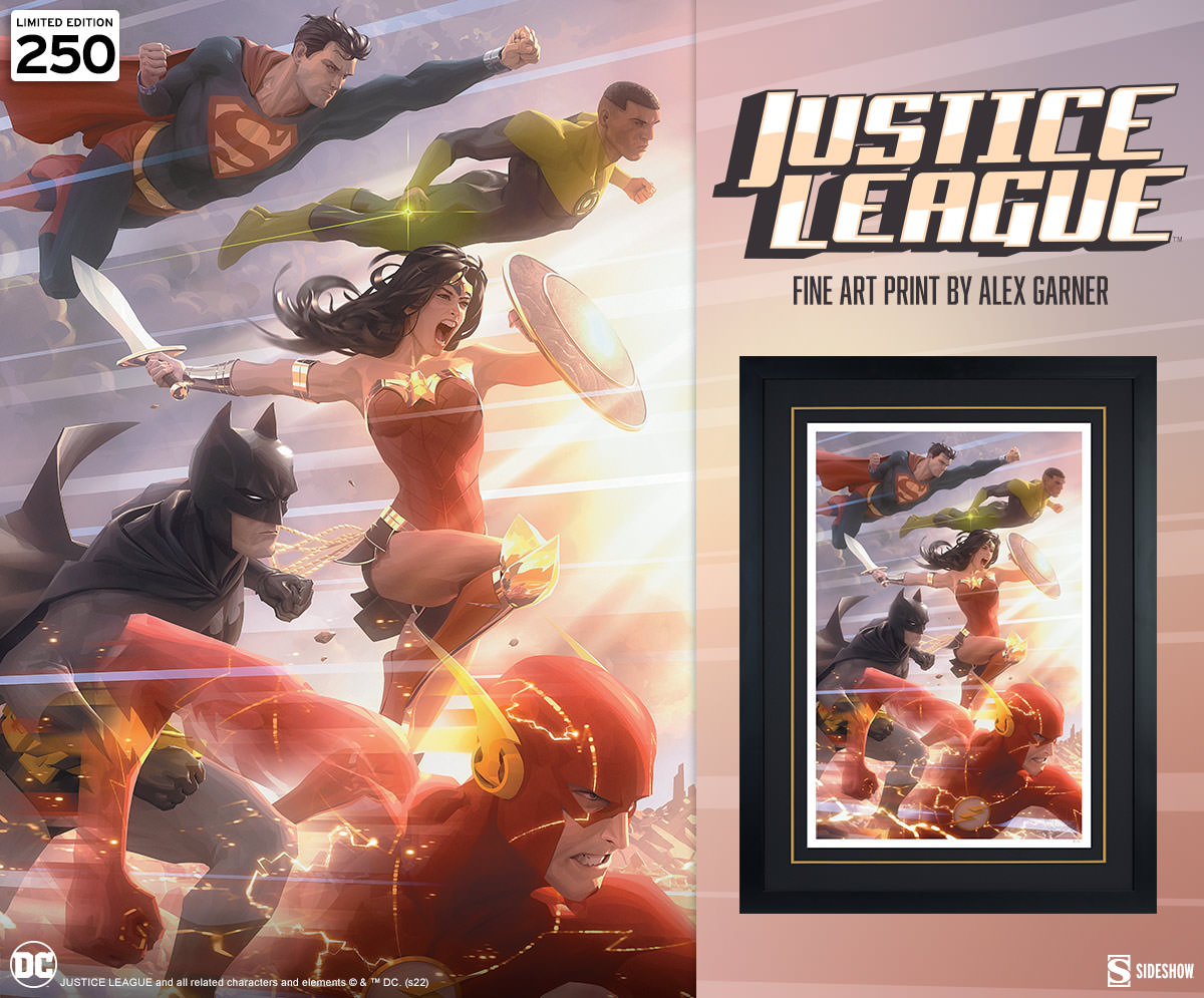 Sideshow presenta Justice League #49 Fine Art Print del artista Alex Garner con Superman, Batman, Wonder Woman, Green Lantern y The Flash.
