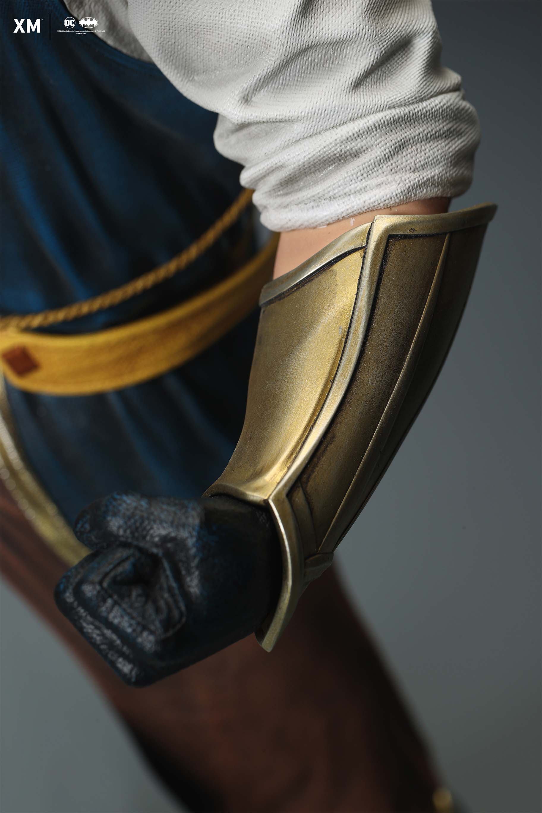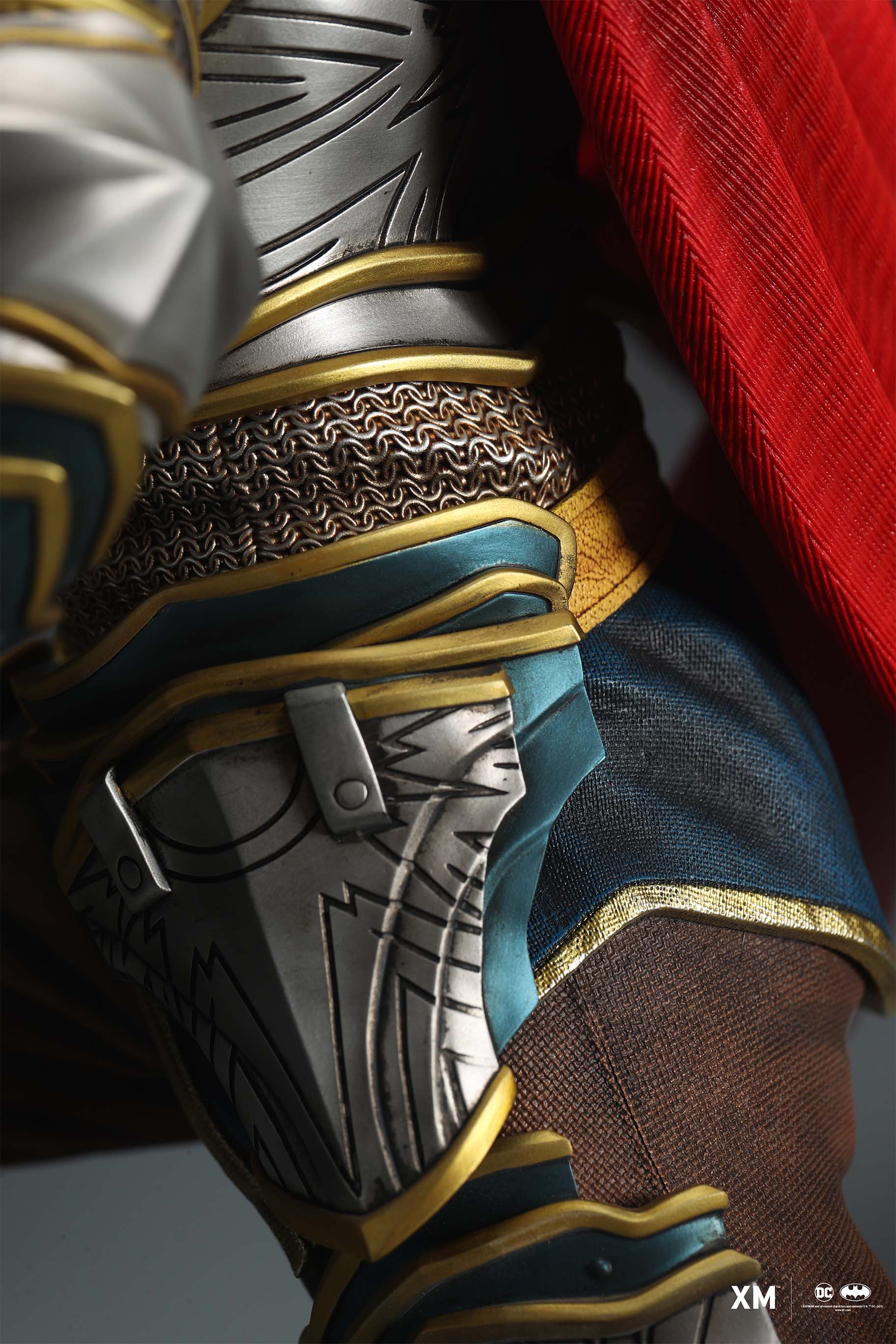 XM le dará un giro único a esta serie al ofrecer a los coleccionistas la opción de coleccionar el aspecto cómico original y un aspecto alterado de alta fantasía desarrollado por el equipo creativo de XM. Construido sobre el diseño existente en los cómics, esta apariencia presenta a Kal-El con una pesada armadura medieval, completa con el estilo único de XM en conjunto con la historia del cómic real. La versión modificada de XM Studios de la armadura de Kal-El también presenta un casco integral, mientras sostiene una pancarta con el escudo de la familia House of El y motivos inspirados en el sol que recorren las placas de las piernas, los brazos y el pecho.