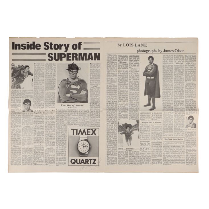 • Un ejemplar del periódico Daily Planet con dibujos a mano y autografiado por Margot Kidder, que captura el espíritu indeleble de Lois Lane.
