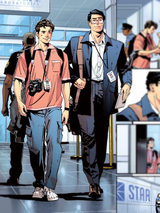 El panel de vista previa muestra a los dos icónicos álter egos luciendo como en casa juntos, ambos con credenciales de prensa mientras caminan por los Laboratorios S.T.A.R. Peter luce su característico look casual: camisa rosa, jeans y una cámara colgada del cuello, mientras que Clark luce una figura más distinguida con blazer y gafas, libreta en mano. Dos reporteros. Dos identidades secretas. Un equipo legendario.