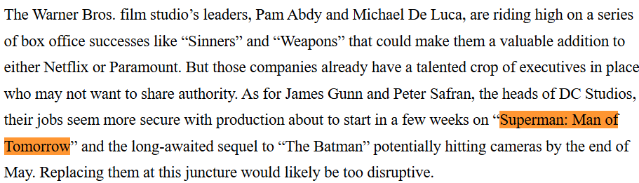 En un artículo publicado por Variety el pasado 19 de febrero titulado "Dentro de Warner Bros. Discovery, la opinión de muchos empleados se inclina por la venta de Netflix frente a la adquisición de Paramount" (Inside Warner Bros. Discovery, Mood Among Many Staffers Shifts in Favor of Netflix Sale vs. Paramount Takeover) escrito por Todd Spangler, Michael Schneider y Brent Lang, en donde se habla especialmente de la posible venta de WB a Netflix, una pequeña frase llamó la atención de sitios especializados (especialmente), cuentas, canales independientes y fans.