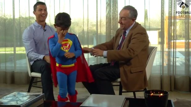 El hijo del extraordinario jugador de futbol, sorprendió a todos vestido del Hombre de Acero.