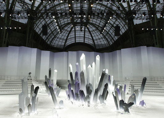 Cristales gigantes fueron el escenario de un desfile de modas en Paris.