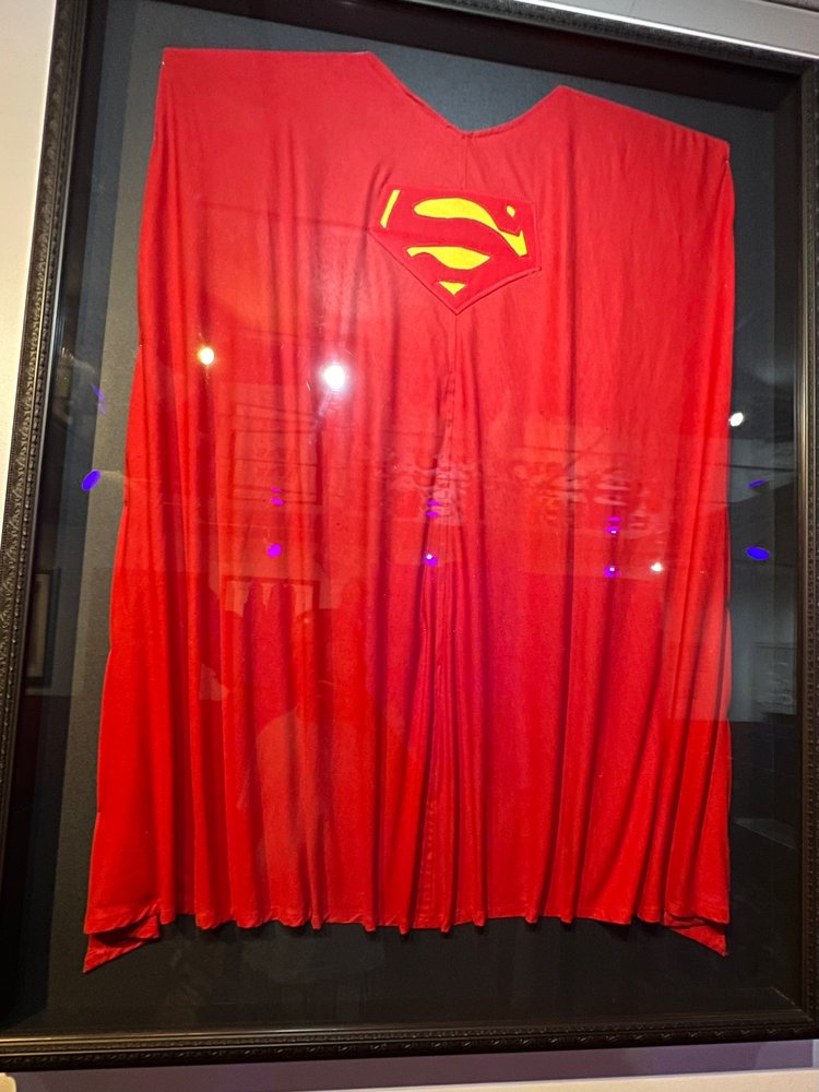 Los artículos en exhibición incluyen una capa de tela roja original, una hebilla de cinturón y un traje interior musculoso que usó el actor George Reeves durante la serie de televisión "Adventures of Superman", que se emitió de 1952 a 1958; una capa para caminar original que usó el actor Christopher Reeve en "Superman The Movie" y "Superman II"; un traje de Superman que usó el actor Dean Cain en la serie de televisión de los años 90 "Lois & Clark: The New Adventures of Superman" completo con capa, túnica y calzas.