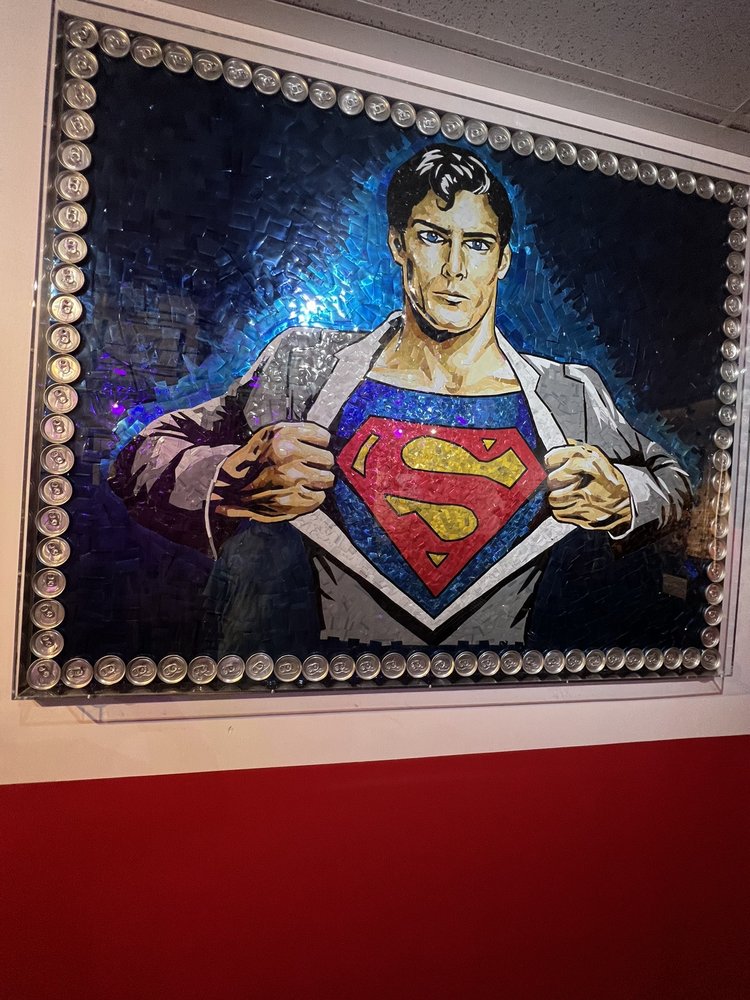 La colección también exhibe una obra de arte única creada completamente a partir de latas de Pepsi que presenta un retrato de Christopher Reeve en una pose icónica como el Hombre de Acero.