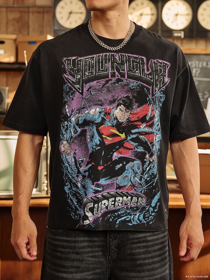 PLG_GSPEECH_SPEECH_BLOCK_TITLESuperman se encuentra con el estilo callejero: el lanzamiento de YoungLA en tamaño héroe.Hasta para sentirse relajado, Superman es excusa en cualquier momento.
