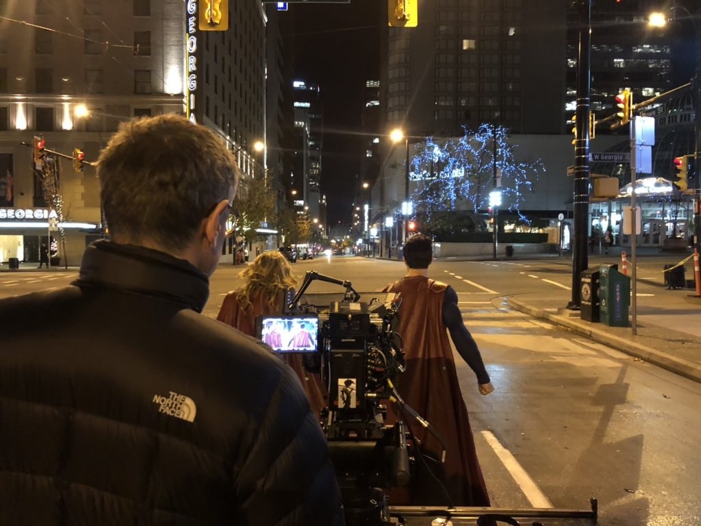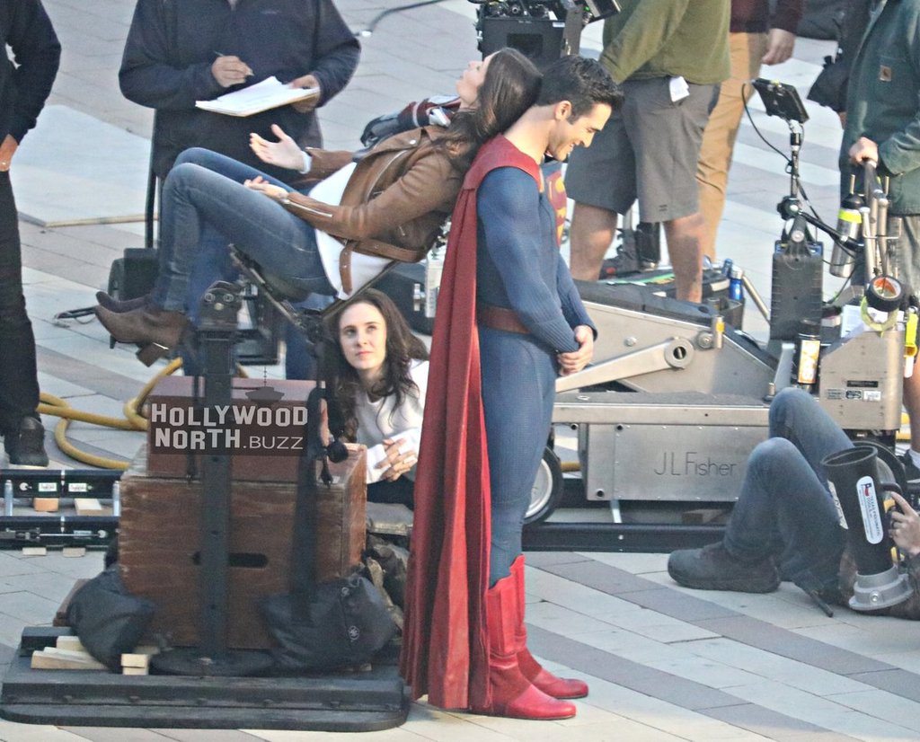 Un poco del Hombre de Acero y la intrépida reportera grabando el crossover de The CW.