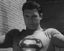 George Reeves. Actor norteamericano, nacido en Iowa en 1914. Reeves comenzó a actuar y cantar en Pasadena, California, durante la secundaria, practicando también boxeo amateur hasta que su madre se lo prohibiese. Su carrera cinematográfica comenzó en 1939, cuando apareció como Stuart Tarleton en Lo que el viento se llevó, uno de los filmes más exitosos de todos los tiempos. Después de la segunda guerra mundial, en 1951, le fue ofrecido el papel de Superman para una serie de televisión. Aceptó el trabajo por un bajo salario incluso siendo la estrella, y se le pagaba solo durante las semanas de producción. En 1957, la naciente cadena ABC eligió el show para difusión nacional, lo que le dio a Reeves y al resto del elenco aún mayor exposición y notoriedad. George falleció trágicamente en 1959, luego de un incidente en su casa que se subrayó como un suicidio, pero que aún hoy genera dudas. Reeves solo tenía 45 años. | ![]() |